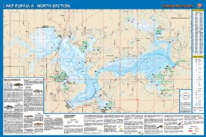 Lake Eufaula (North Section), Oklahoma (North of Hwy 9 Bridge) Waterproof Map (Fishing Hot Spots)This Lake Eufaula is in Oklahoma. 1 of a 2 Map Set. White bass are extremely abundant and popular with anglers. Fish in the 1- to 1 1/2-pound range are common. Although it is not known as a trophy bass lake, Lake Eufaula has good numbers of fish. It is primarily known as a crappie lake, and if you are looking for the big ones head south to the Gaines Creek area. Featured Species: Largemouth Bass, White Crappie, White Bass (Sand Bass), Channel Catfish, Blue Catfish and Flathead Catfish Map Features: